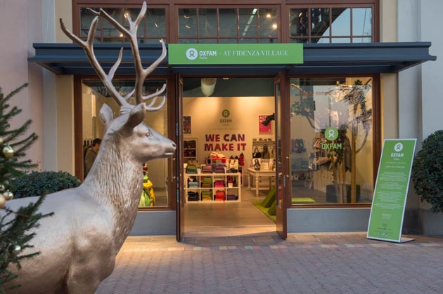 Nel 2013 ospita la Pop Up boutique benefica «OXFAM Italia at Fidenza Village», anche grazie al contributo dei brand partecipano per Oxfam a questa iniziativa attraverso la donazione dei propri prodotti e articoli: Alce nero, Azienda Agricola Tommaso Cei, Bottega Solidale, Champagne Capagio, Chime for Change Founded by Gucci, Craft Link, ethicaltrend, Fairtrade Italia, Filo’, Footzyrolls, LunAroma, Manifesta, Nazca, Pitti & Sisi, The Bridge, Too Late, Verniani. L’acquisto e in confezionamento dei regali in questa speciale boutique permettono ad Oxfam Italia di migliorare i progetti a sostengo delle donne nel mondo per sconfiggere la povertà. La charity boutique ospiate, inoltre, attività di laboratorio per intrattenere e divertire i più piccoli insieme a Babbo Natale e ai suoi Elfi.